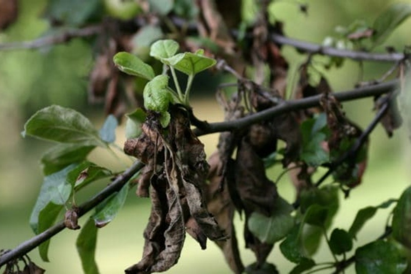 枝干病害:如腐烂病严重环绕枝干一周,阻断养分水分运输,导致其上部枝条萎蔫。